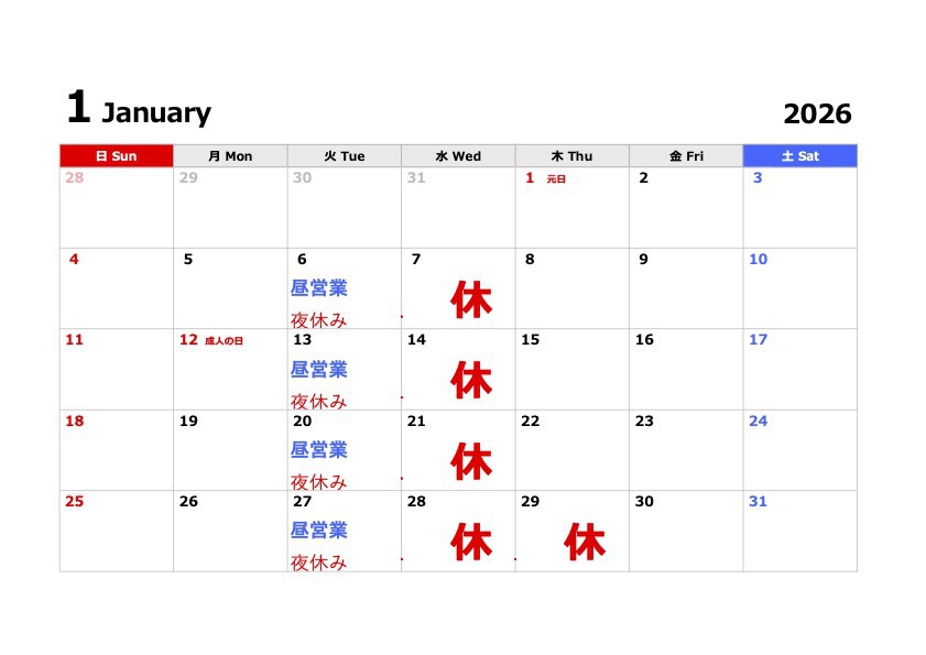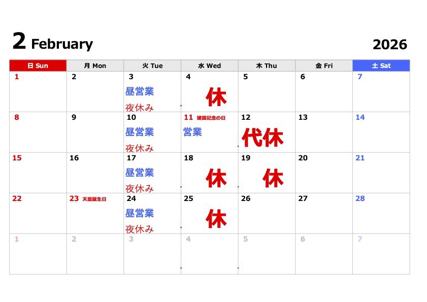 *休日等変更がある場合がございます。必ずお電話でお問い合わせください。